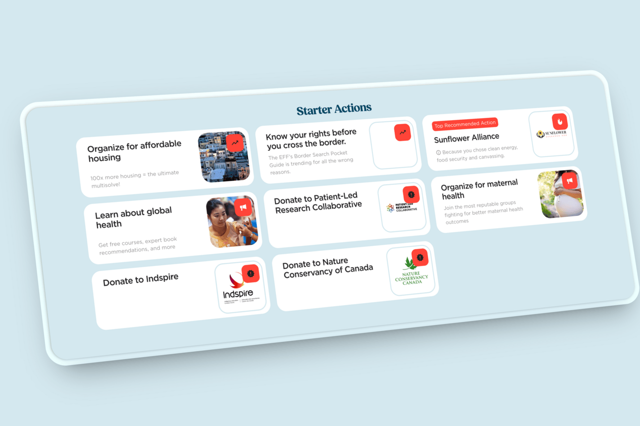 Start getting recommended actions based on what you give a shit about, and how you like to show up!